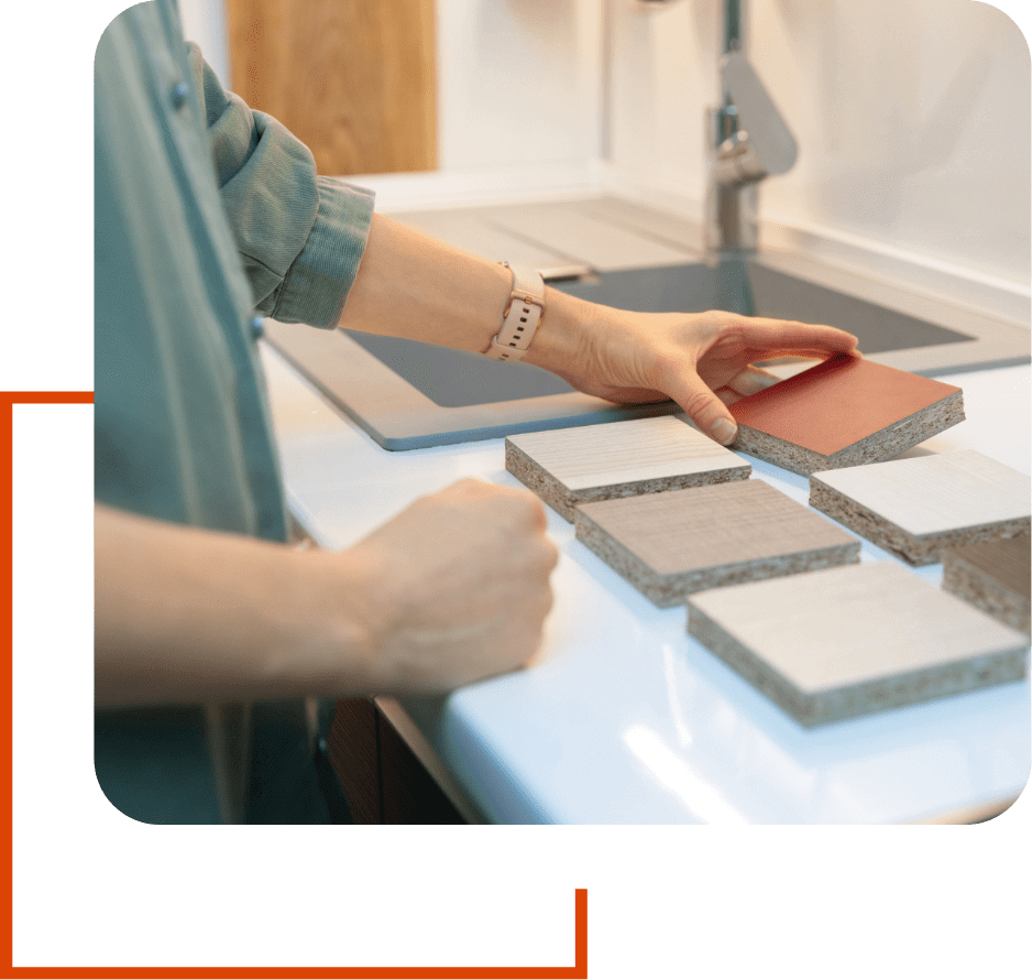 Le stratifié est souvent perçu comme une option économique, mais il offre une grande variété de styles, allant des effets bois et béton aux motifs plus audacieux, et se décline en plusieurs finis : lustré, mat ou texturé. Ce matériau est composé de plusieurs couches de papier Kraft superposées et recouvertes d’une résine protectrice. Lors de la fabrication, la feuille de stratifié est moulée ou collée sur un panneau de particules de bois.